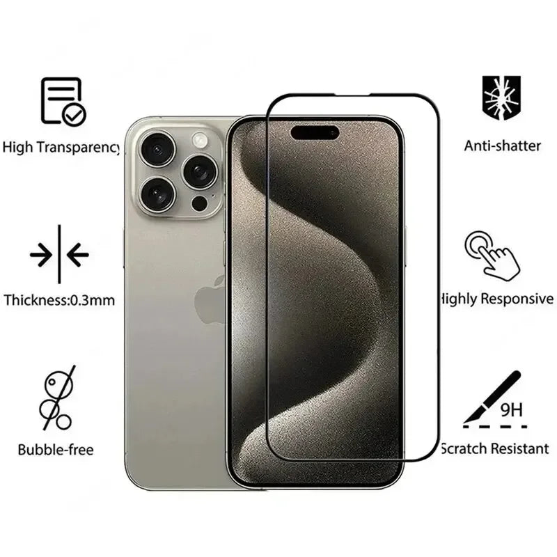 1 PCS Tempered Glass For iPhone 16 Pro Max 16Pro Anti Scratch Screen Protector Black Frame Protective Glass For 11 16ProMax