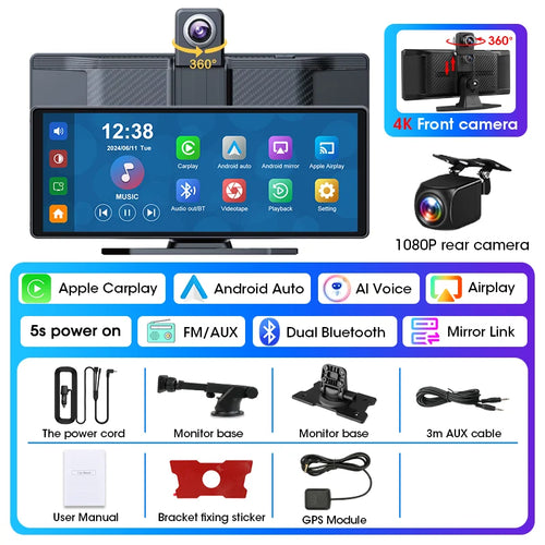 10.26" Car DVR Intelligent Screen with 4K 360° Rotation Dash Cam