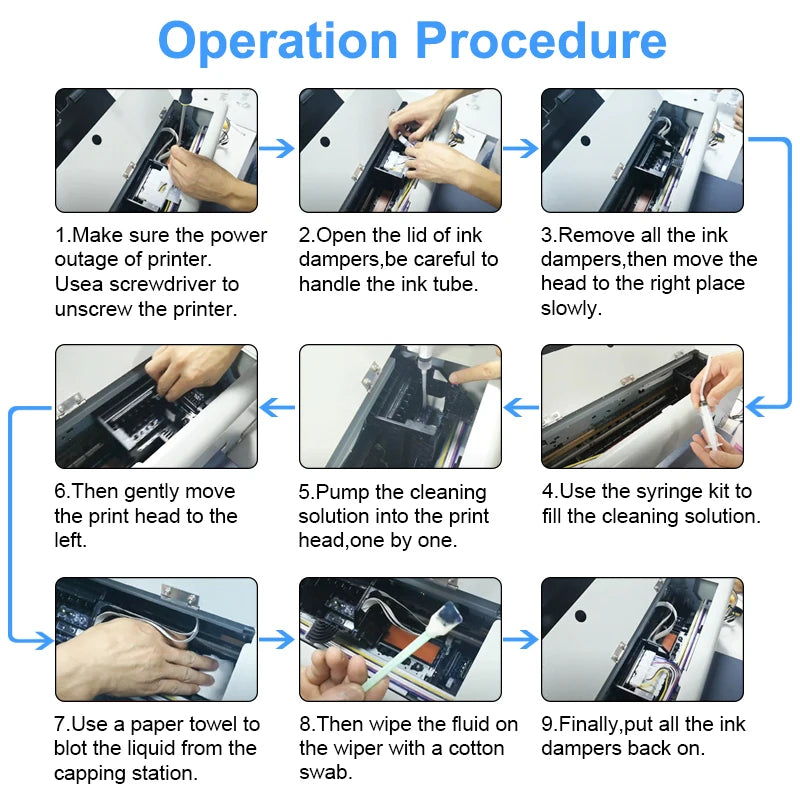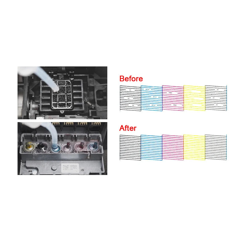 Keep your printer healthy and productive,the cleaning solution is pushed through the printhead nozzles in order to break up and flush out any ink particles or residue that may be interfering with the printer's function.