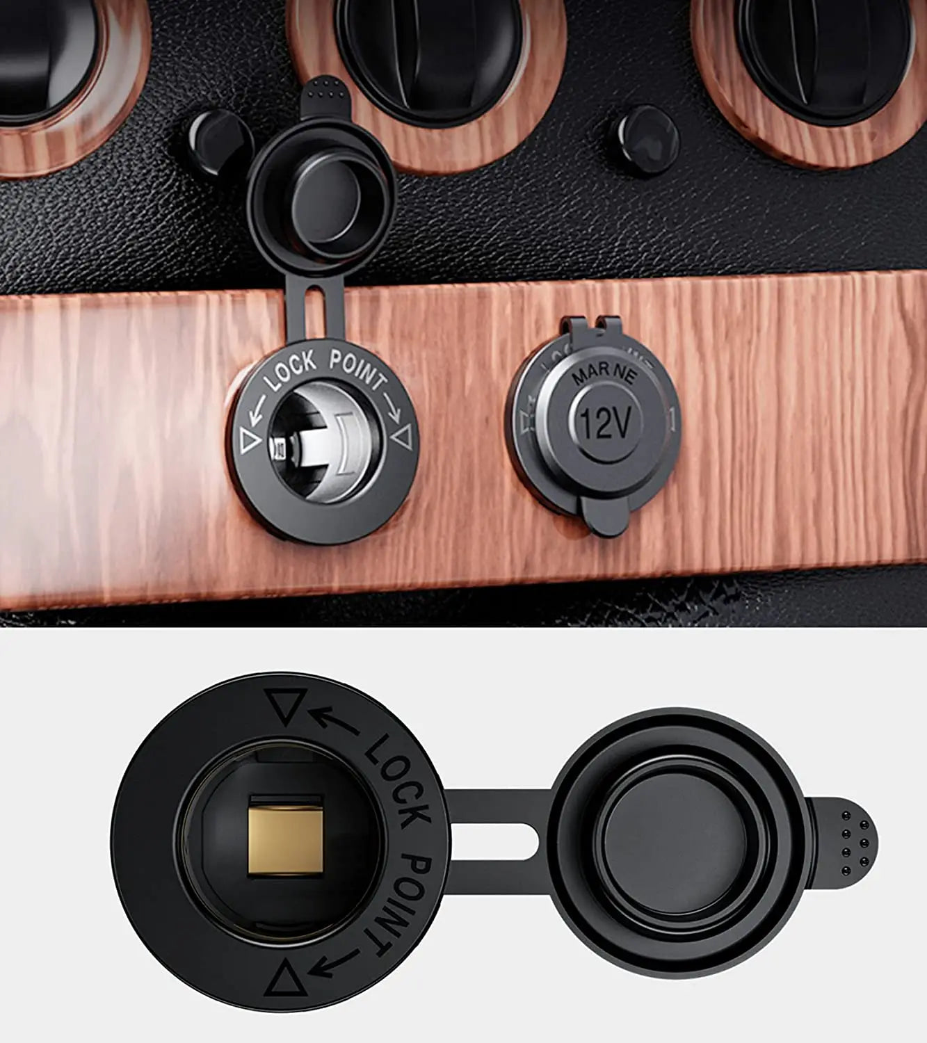 【EASY TO INSTALL】The cigarette lighter socket is not surface mounted, only needing a small hole, It is a through hole installation requirin a large (1 1/8") hole.