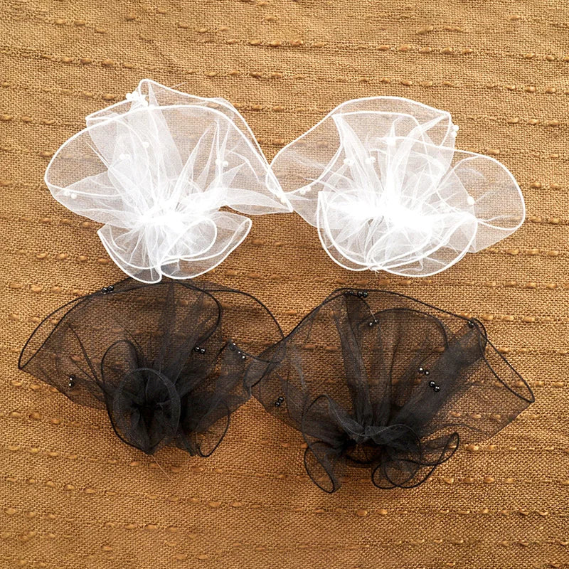 1Pair Detachable Cuffs Pearl Lace Mesh Fake Flared Sleeves Women