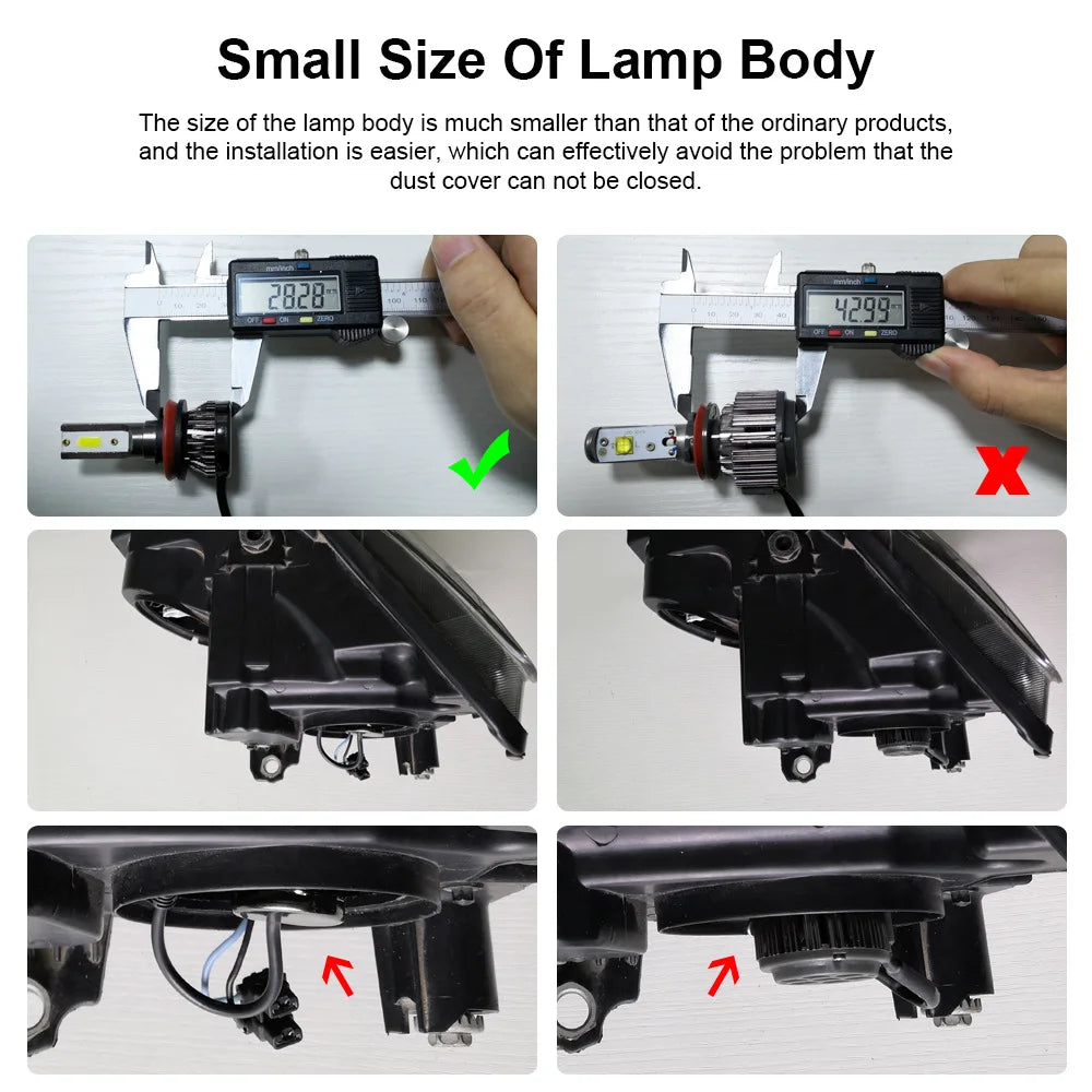2PCS/pair Mini Lights Auto H7 LED H4 Bulb H3 H8 H9 H11 9005 9006 9012