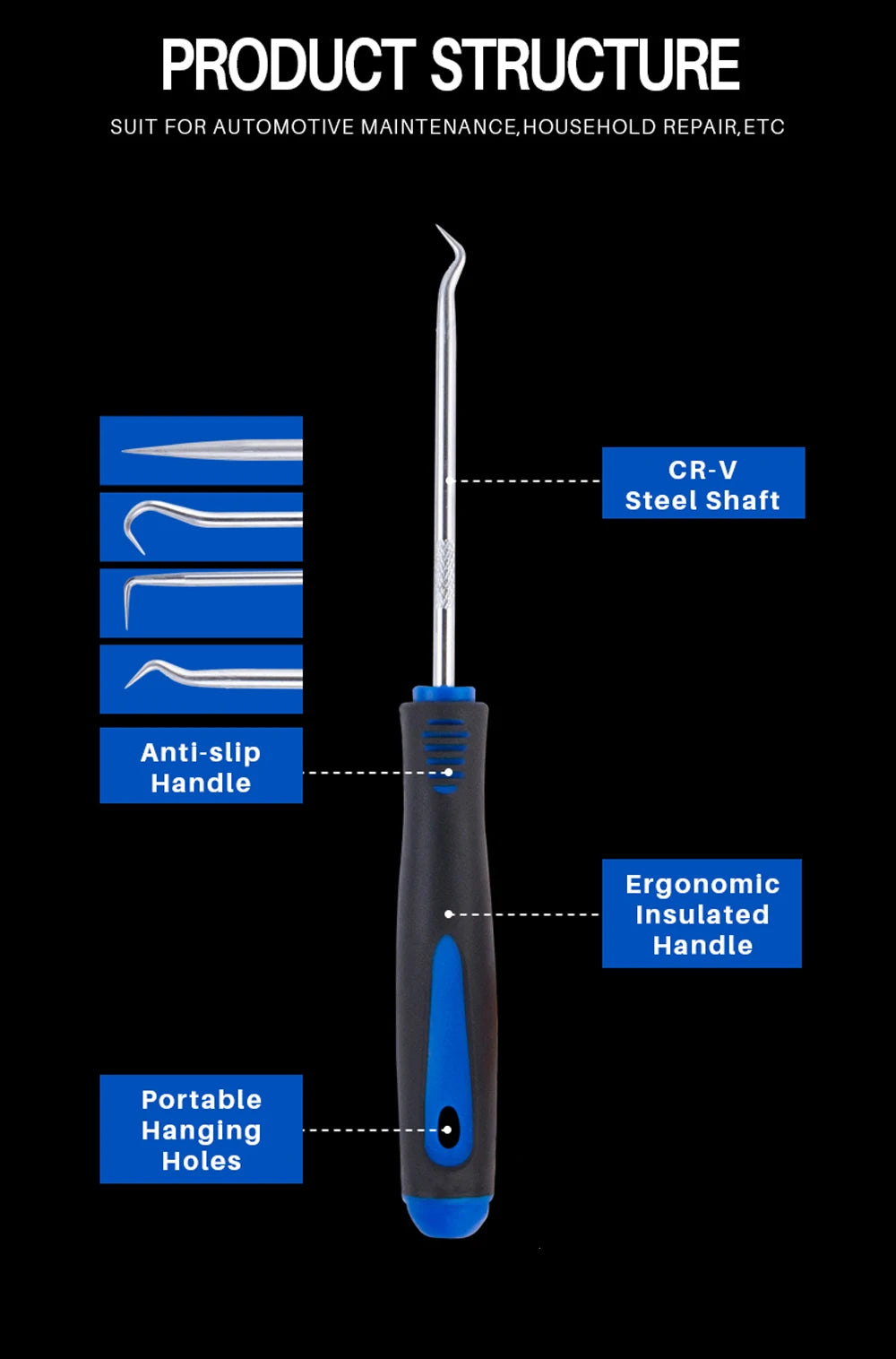 *Versatile 4Pcs Car Auto Vehicle Oil Seal Screwdrivers Set: This set includes 4 different types of hooks and picks, including straight, hook, combination, and 90-degree, providing a range of options for various tasks.