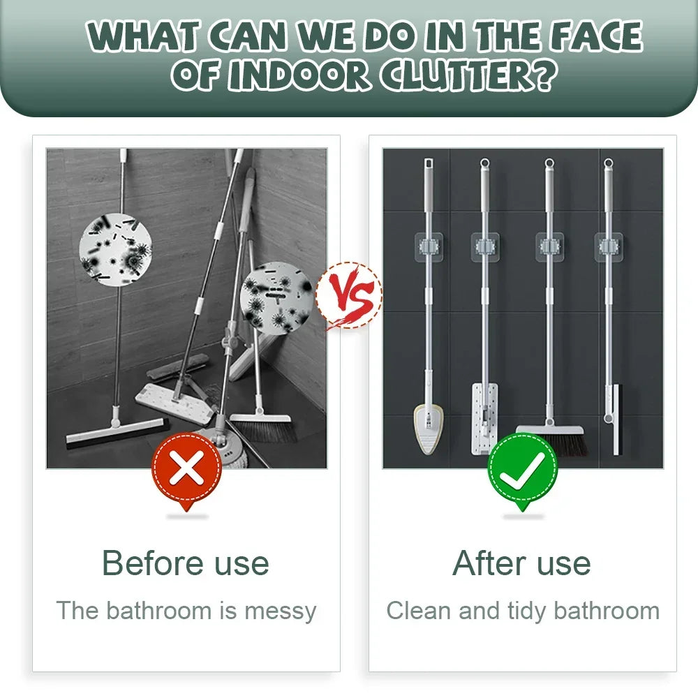 4PCS Wall Mounted Mop Organizer Holder Wall-Mounted Waterproof Mop