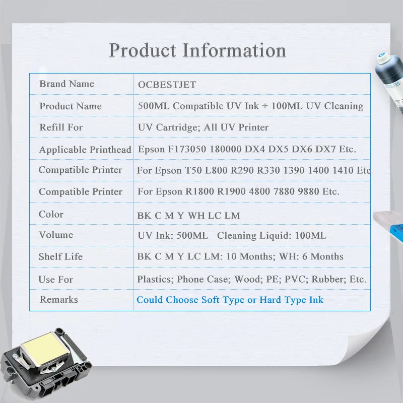 500ML LED UV Ink For Epson L800 L805 L1800 R290 R330 1390 1400 1410