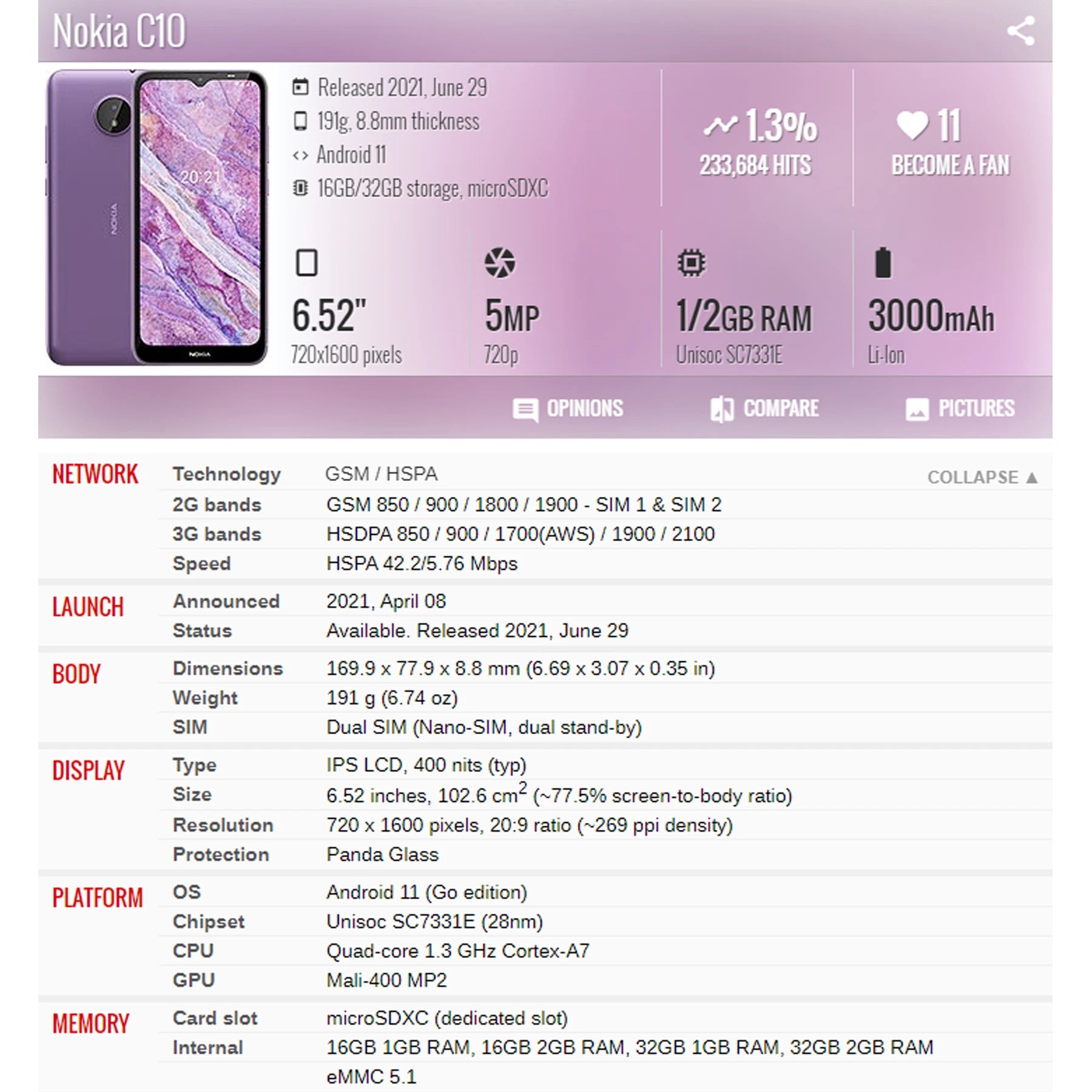 6.52" Inch For Nokia C10 C20 TA-1342 TA-1339 TA-1348 TA-1352 TA-1356