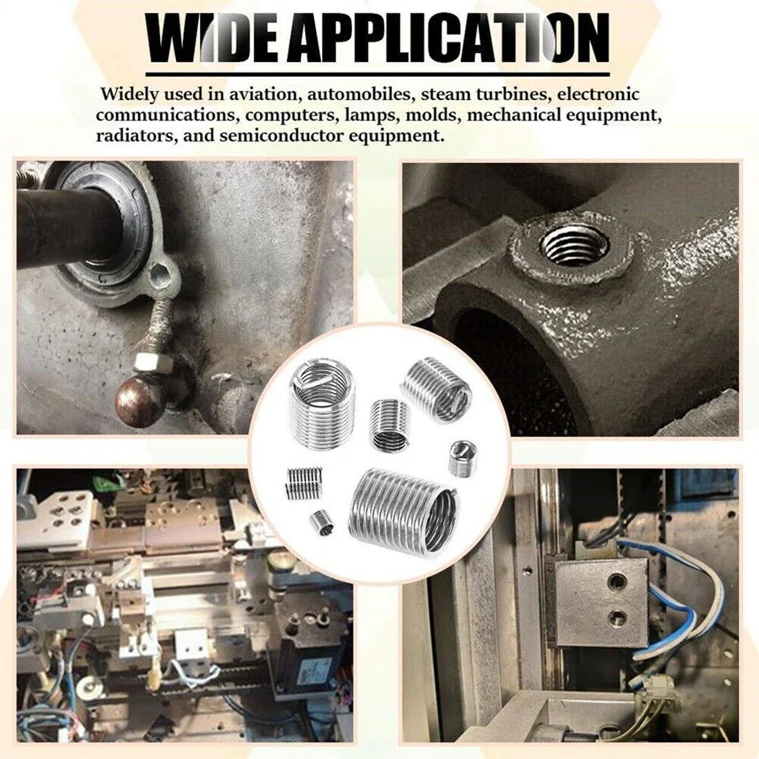 【wide applications】This thread repair set can be widely used for high voltage switch gear, microwave communication, automotive parts, aerospace precision parts, electronic products, air equipment, radiators, etc.