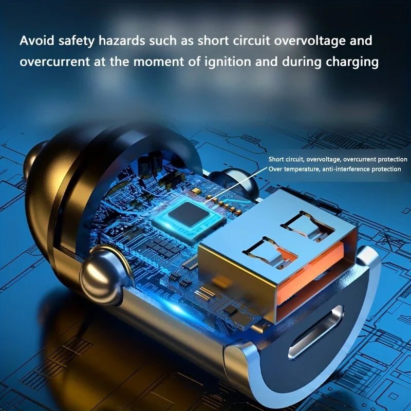 66W Flash Car Charger with Pull Ring - Ultra-Compact PD+USB Dual Port