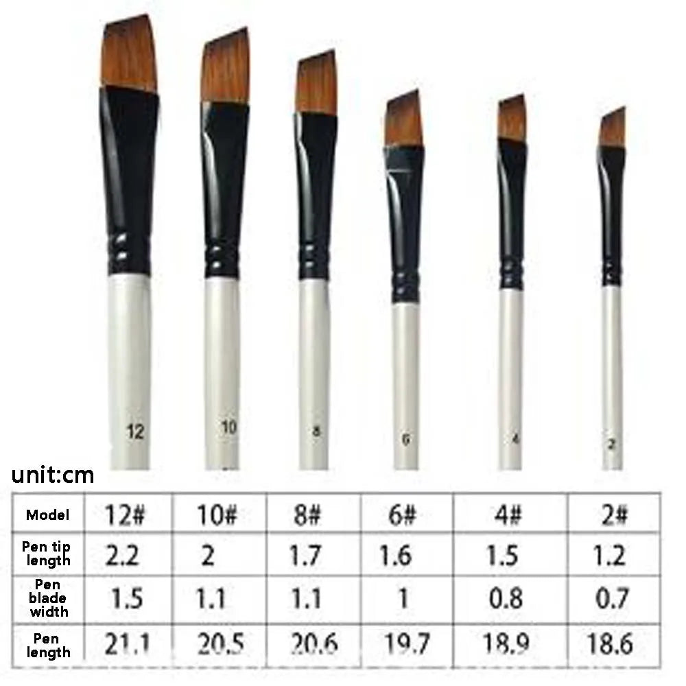 Package included:The six are 2, 4, 6, 8, 10, 12 sloping brush