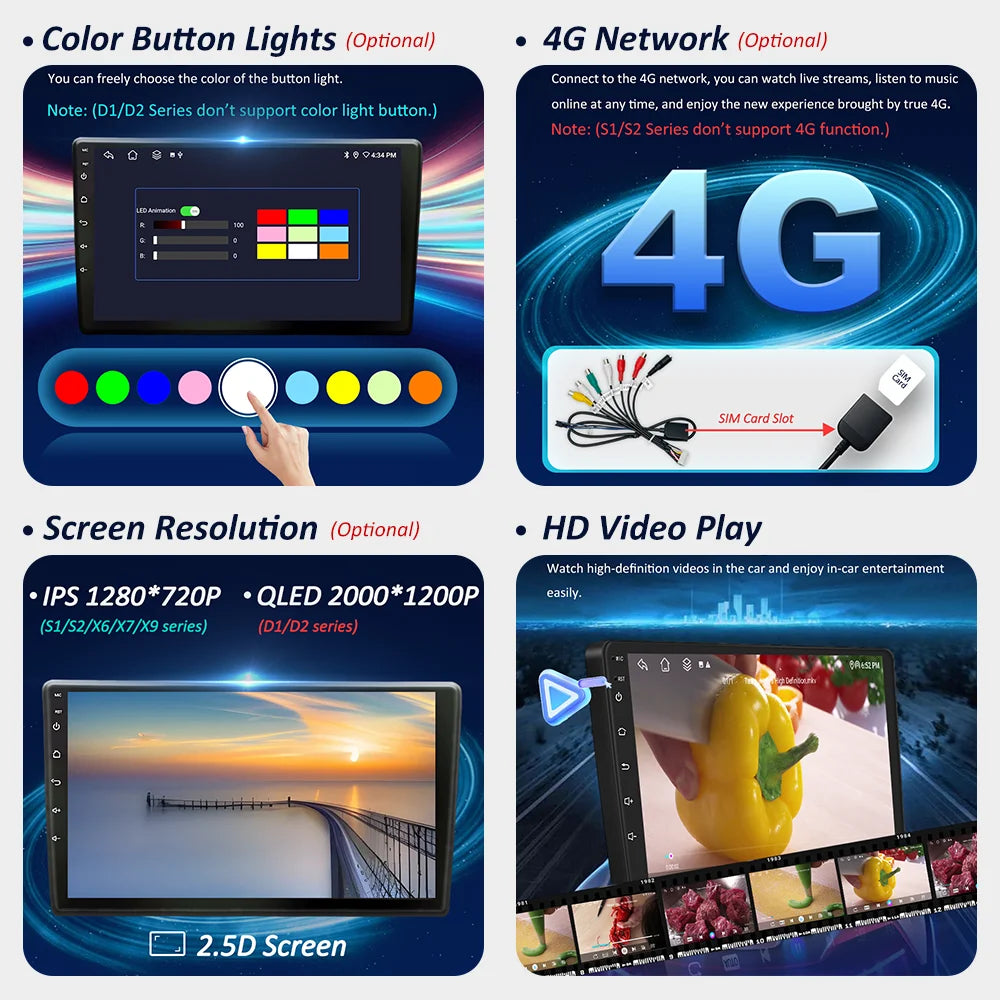 2. The product supports Wireless Carplay, Wired Android Auto, Cooling Fan, Bluetooth, WiFi, split screen, GPS navigation,etc, other functions are optional;