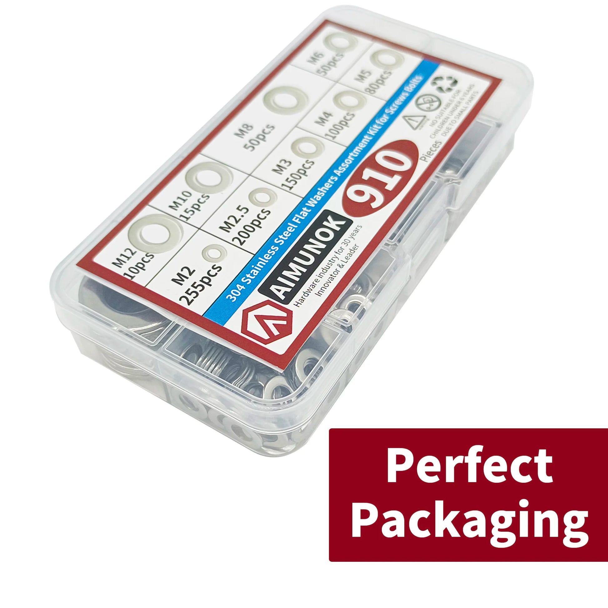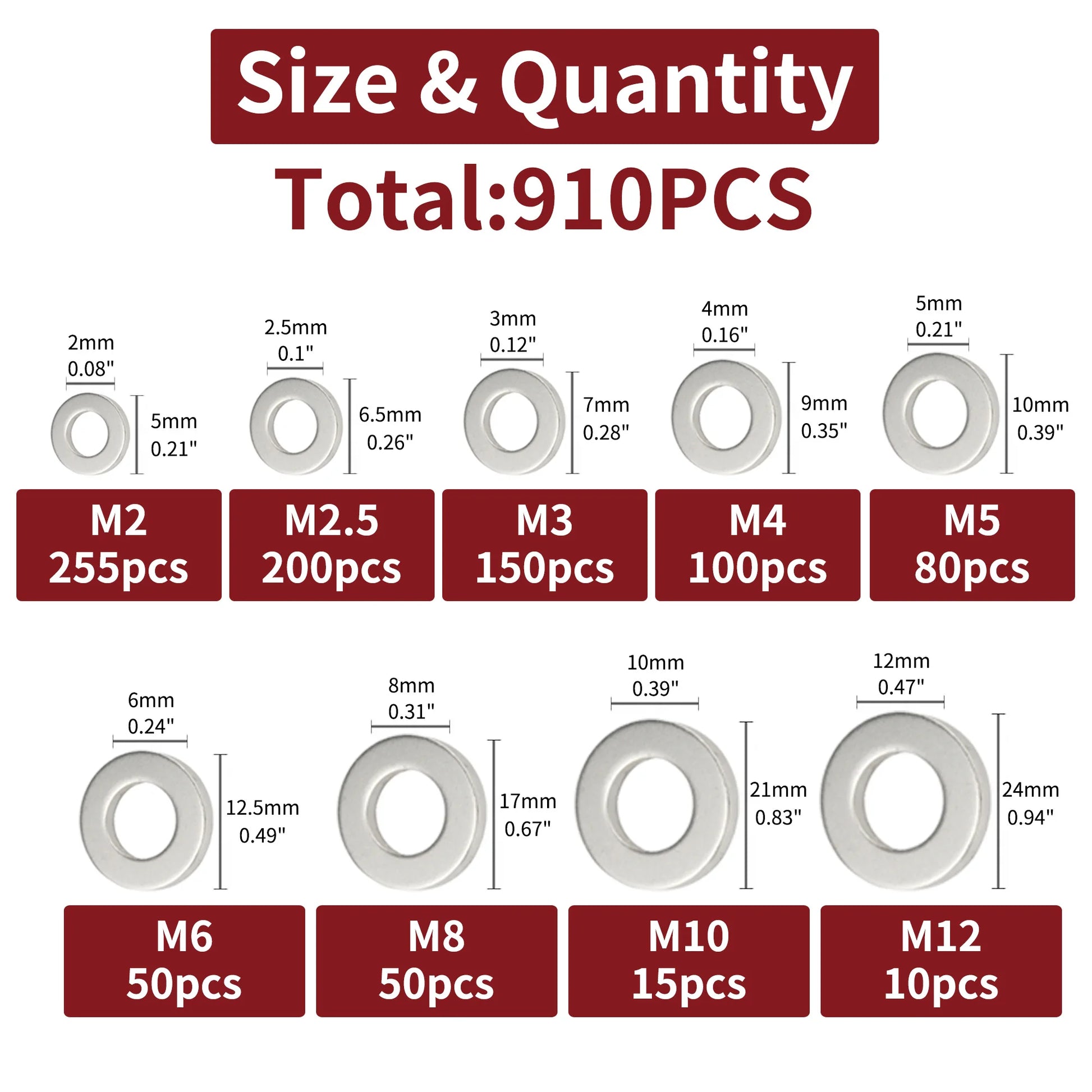 910/200pcs 304 Stainless Steel Flat Washers Assortment Kit (M2 M2.5 M3
