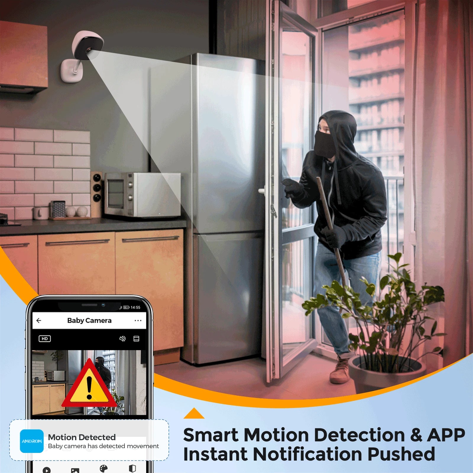 【Advanced Fire Detection】Amorom security cameras utilize an intelligent algorithm on the cloud server, enabling them to differentiate between alarms triggered by human bodies, pets, cars, packages, and fires. Whether installed as warehouse cameras, they effectively protect properties and ensure safety against fire hazards. Alternatively, when used as living room camera, bedroom camera, or baby camera, they allow you to keep a watchful eye on your baby, dog, or cat.