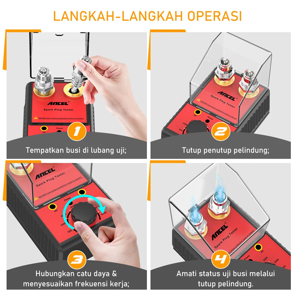 ANCEL Car Spark Plug Tester is for testing the performance and strength of spark plugs. The product simulates actual engine conditions and works up to 6000rpm. It is compatible with all spark plug tests for crankshaft engines and motorcycles on the market. It can also test two holes at the same time and is designed with a protective cover to ensure the safe operation of maintenance personnel during the test