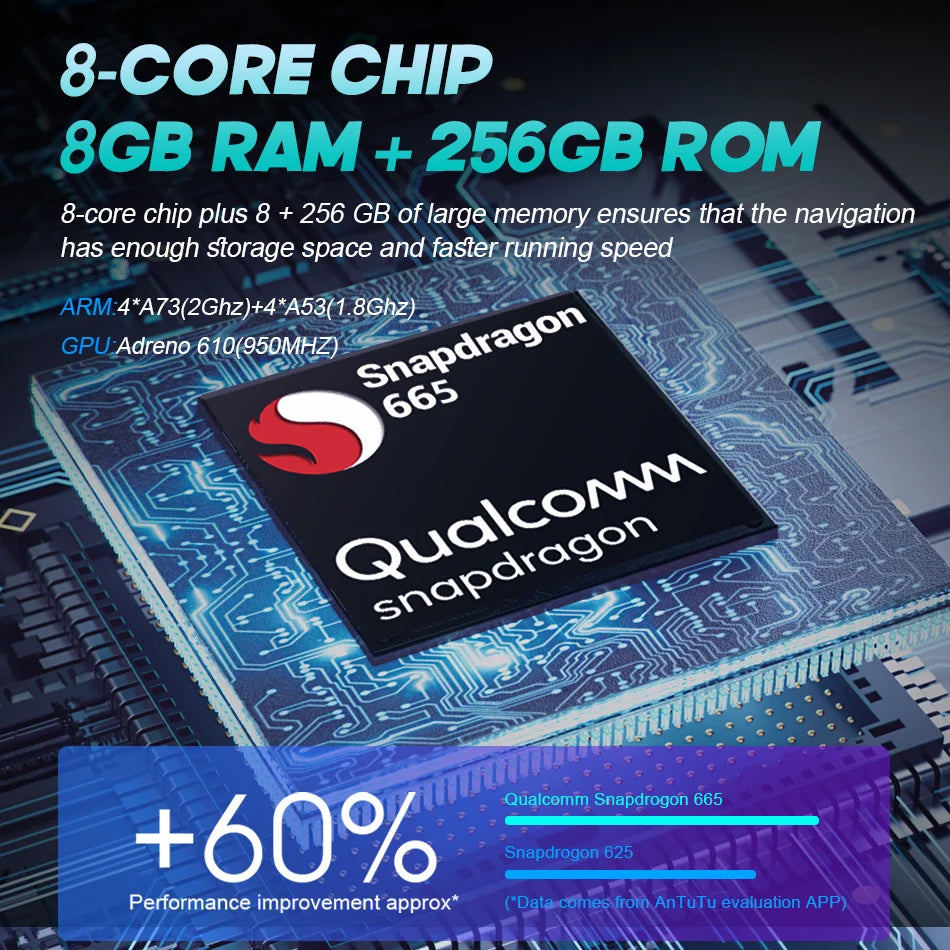 CPU: Qualcomm Snapdragon 665 / MTK 8581 (option)