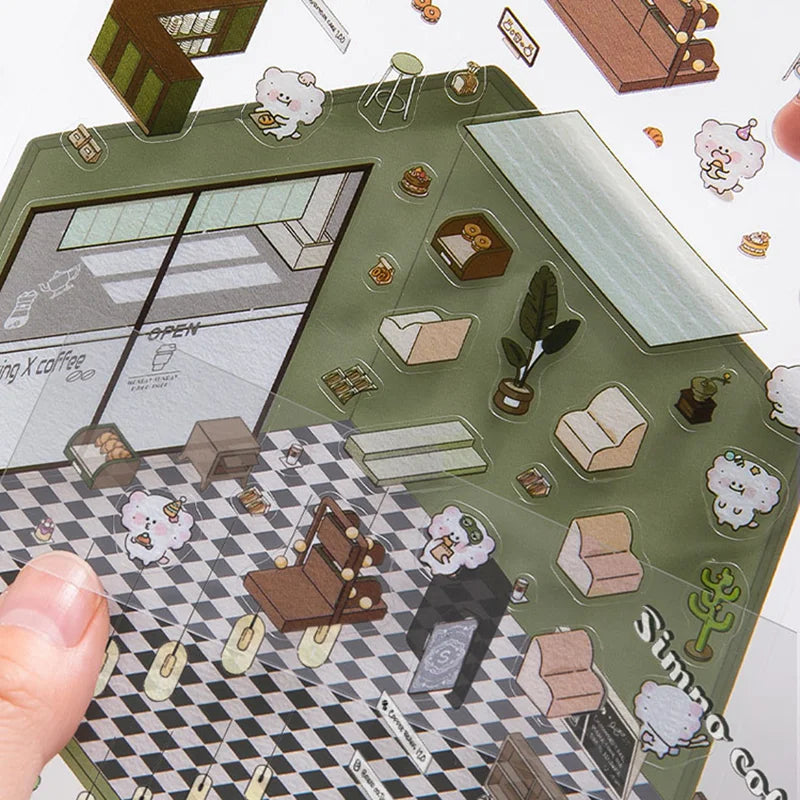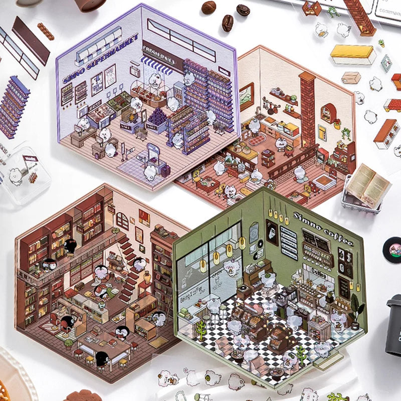 Creative DIY Project: Engage in a fun and creative activity with our DIY 3D house stickers, suitable for both kids and adults. Create charming scenes of supermarkets, coffee shops, bookstores, and more using the cute cartoon stickers included in the set.