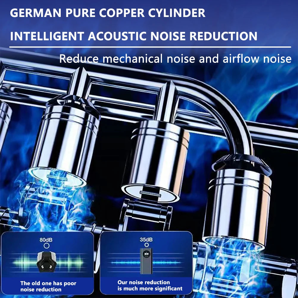 1. Rapid Inflation with Pure Copper Motor: The portable air compressor features airflow boosting technology powered by a pure copper motor, enabling a powerful and rapid inflation in just 10 seconds. This efficient mechanism significantly increases the inflation speed, ensuring you're back on the road in no time.