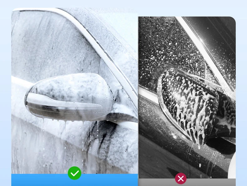 1.Powerful Cleaning Effect: The fan-shaped spray design allows you to clean dirt and oil stains with ease, as the foam is fully emulsified and evenly covers the entire car body. The large 60-degree fan spray range ensures that no mark is missed.