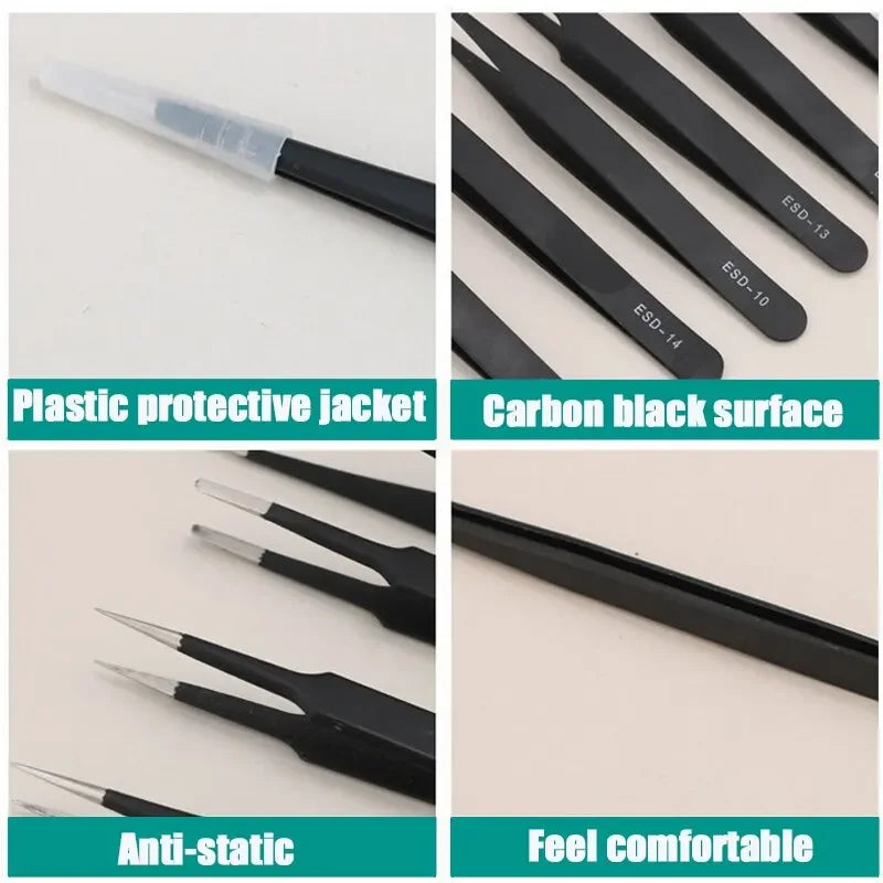 • ESD Anti-Static Stainless Steel :These tweezers are made from ESD anti-static stainless steel, ensuring a safe and efficient electronic repair process. They are perfect for industrial and home model making.