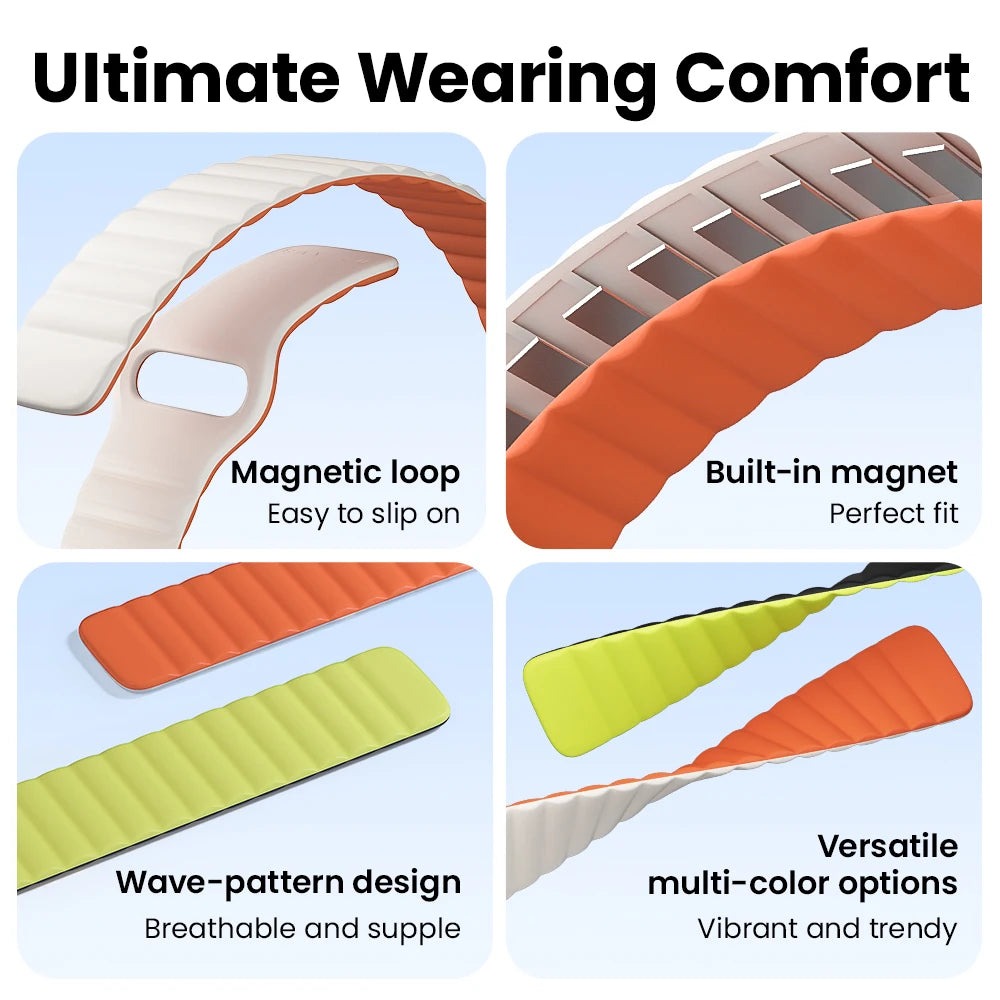 Creative magnetic strap: Equipped with two straps: magnetic strap & silicone strap. Skin-friendly silicone material, stylish, comfortable and portable.