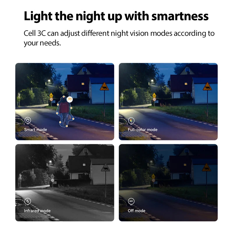 Cell 3C can adjust different night vision modes according to your needs, whether you want the night vision to remain in full color all the time or want to turn on full color only when there is an event to save energy, it can always satisfy you.