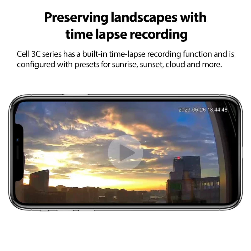 Cell 3C series has a built-in time-lapse recording function and is configured with presets for sunrise, sunset, cloud and more, making it easy for you to record the best moments in your life.