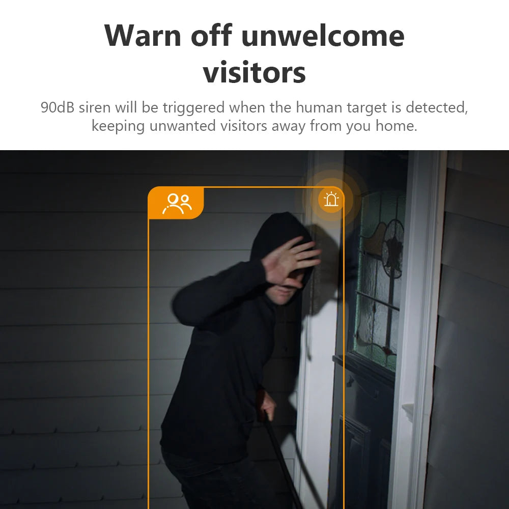 90dB siren will be triggered when the human target is detected, keeping unwanted visitors away from you home