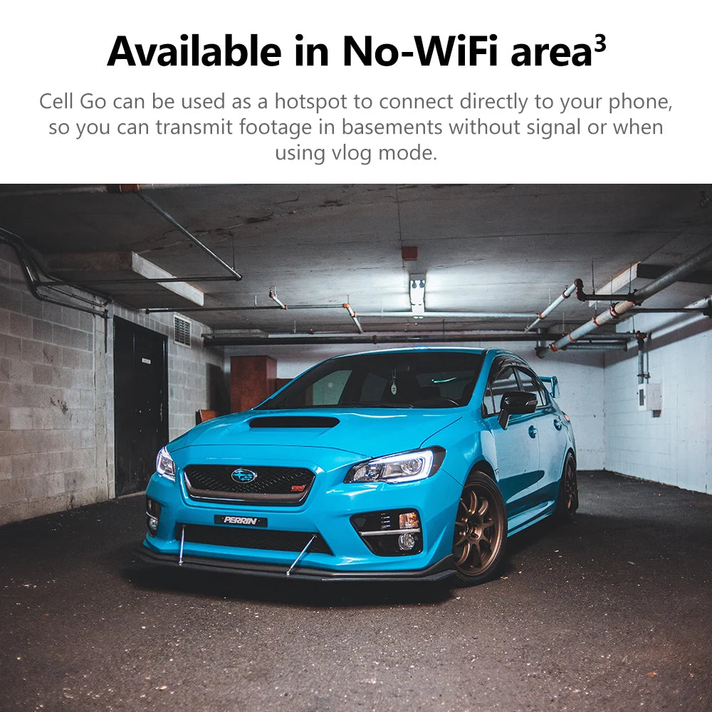 Cell Go can be used as a hotspot to connect directly to your phone, so you can transmit footage in basements without signal or when using vlog mode