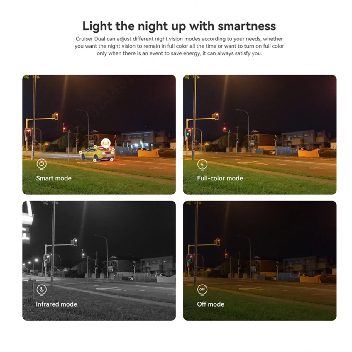 Cruiser Dual can adjust different night vision modes according to you needs, whether you want the night vision to remain in full color all the time or want to turn on full color only when there is an event to save energy, it can always satisfy you.