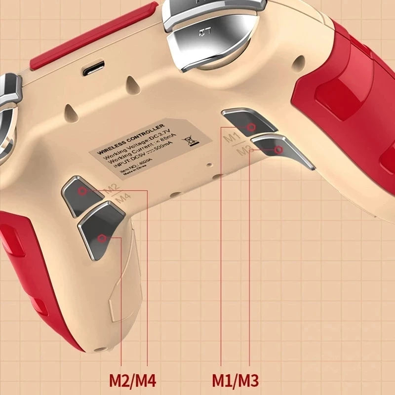 1.Pairing step: Turn off the gamepad, press"Share"+"Home"button to turn on the gamepad to pairing mode. The light bar will flash blue and the speaker emit a sound same as motor vibrates.
