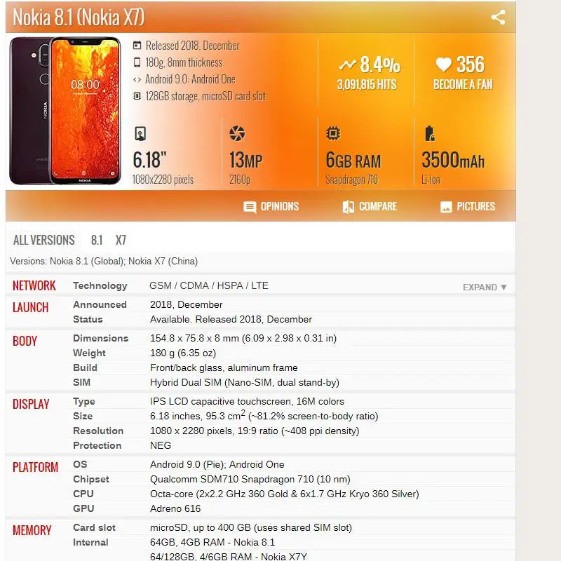 LCD Screen for Nokia 8.1 X7 LCD Display for Nokia X7 8.1 LCD Assembly