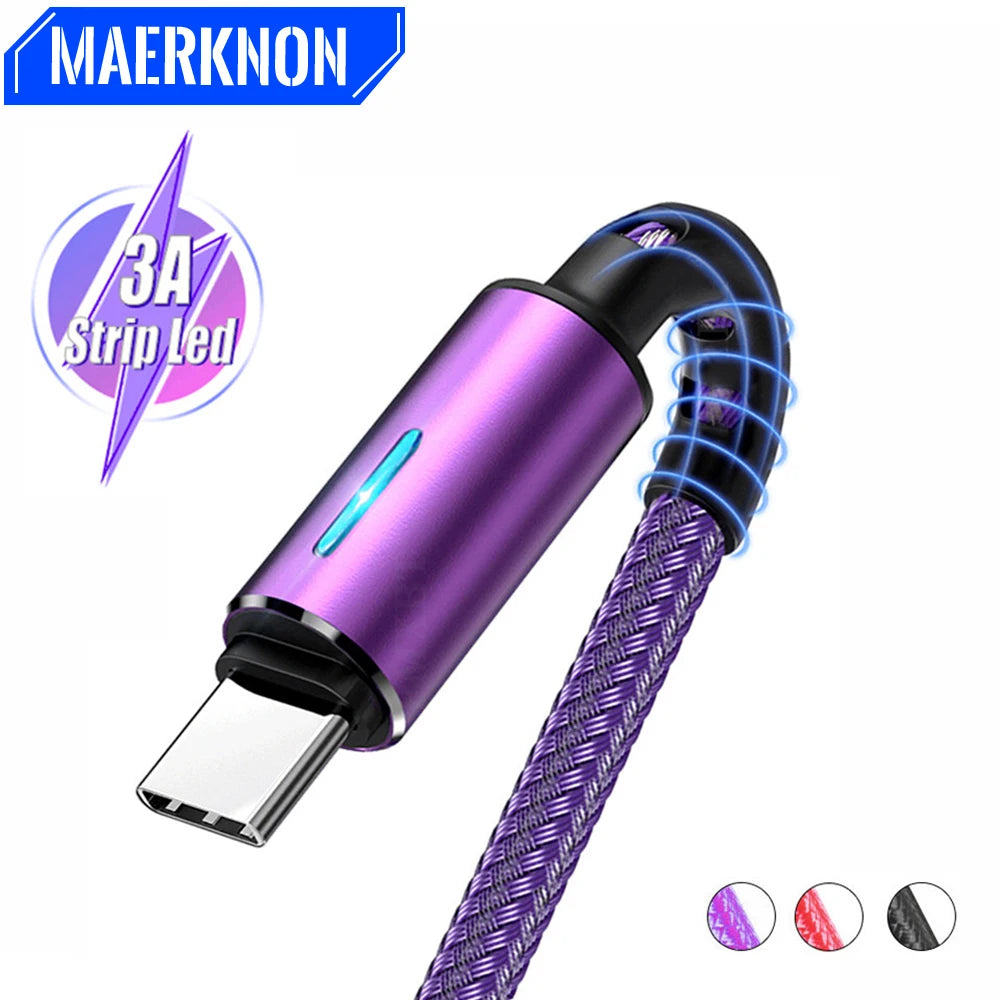 LED USB C Cable Fast Charging TYPE-C Cable 0.25m 1.2m 2m For Samsung