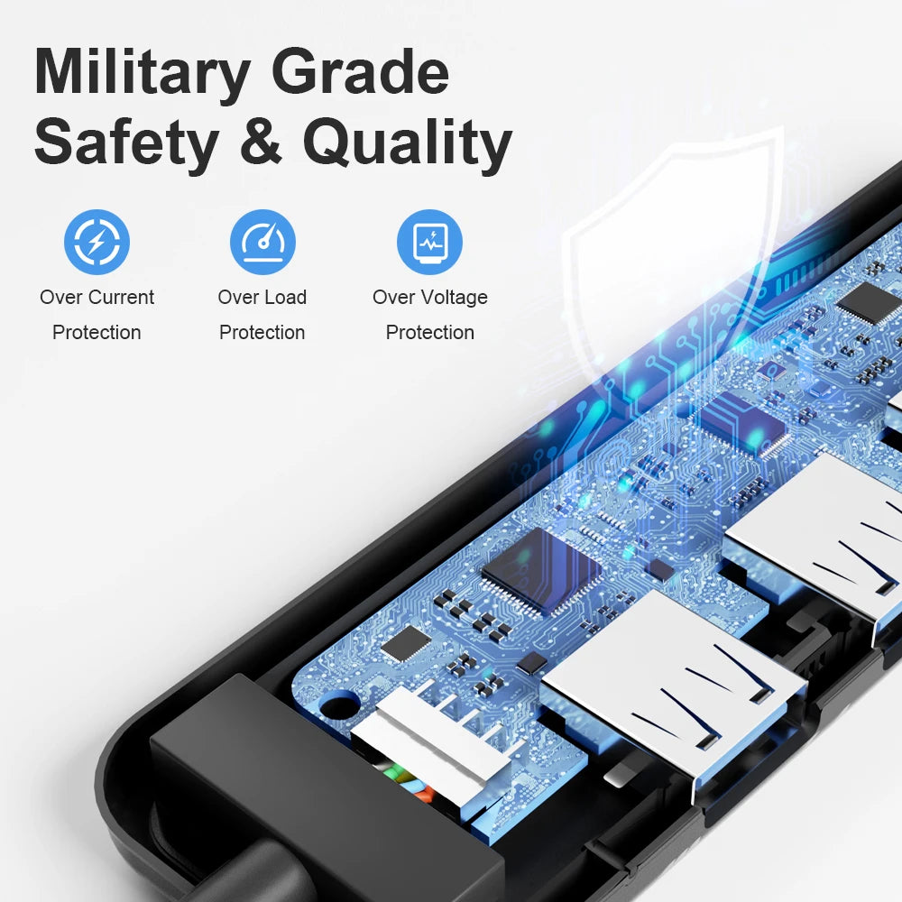 • 4 Ports Design :With its 4-port design, this USB hub provides ample space for multiple devices, making it perfect for powering your laptop, phone, and other accessories simultaneously.