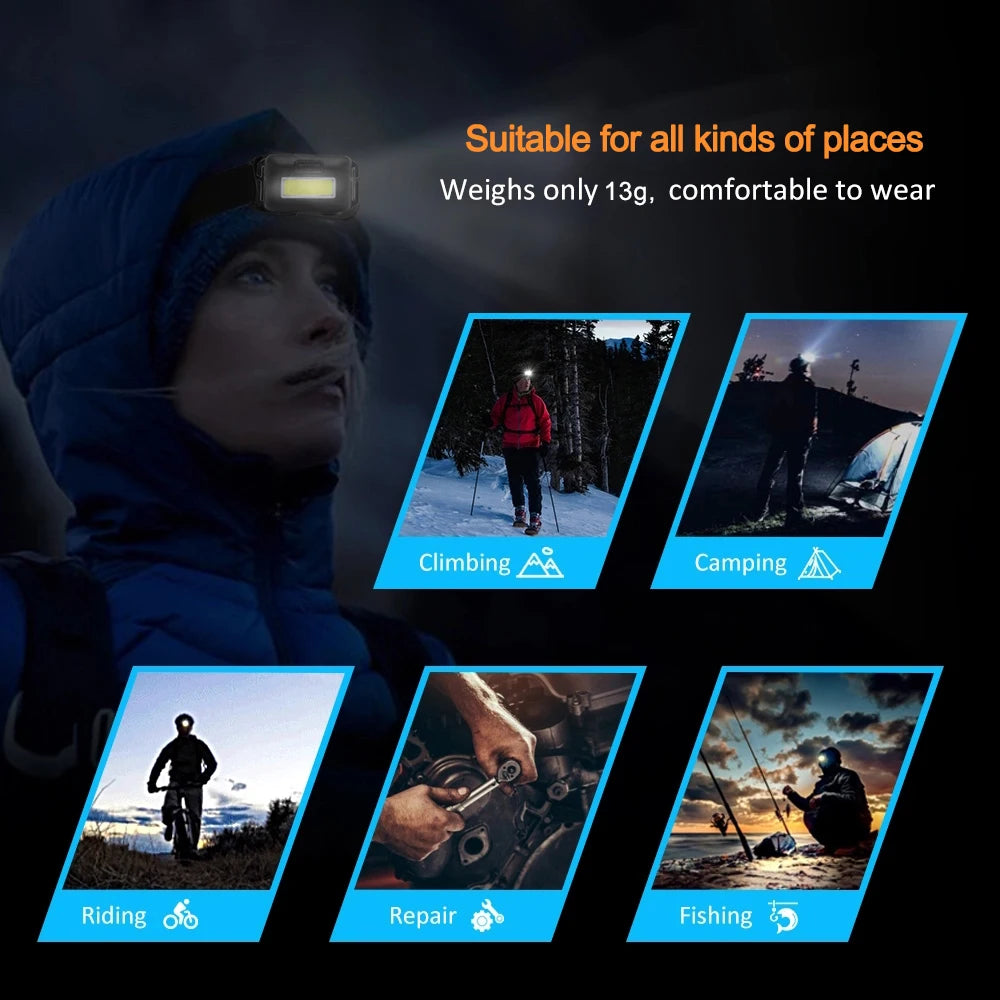 Mini Headlight COB LED Headlamp 3 Modes Waterproof Headlight Head