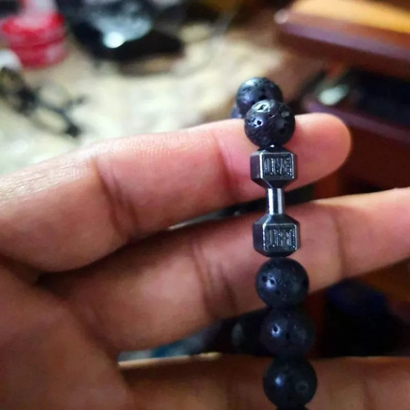 Natural Black Volcanic Lava Stone Dumbbell Bracelet Black Matte Beads