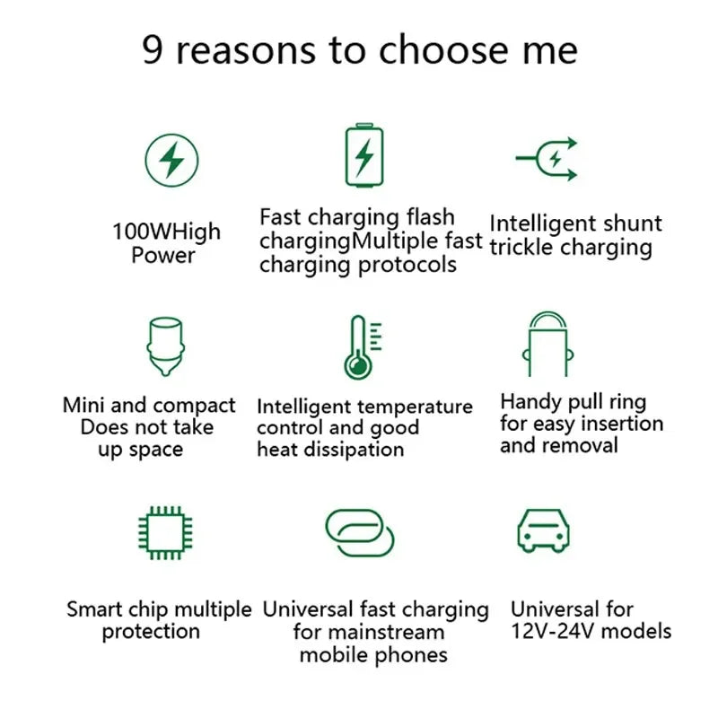 • Fast Charging :With a flash charge of 66W, this car charger can quickly charge your device on the go.
