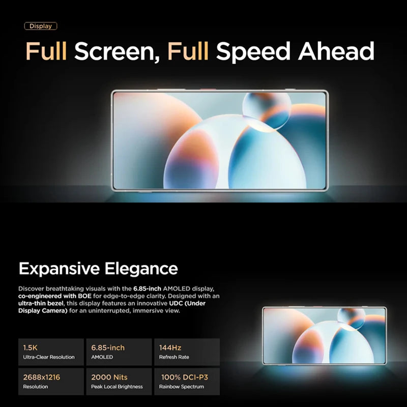 >Screen --- 6.85" ,144Hz Refresh Rate, AMOLED