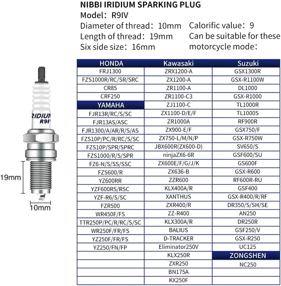 1.FOR HIGH-PERFORMANCE ENGINES: Spark plug for Motorcycle, specifically designed to increase power, reduce fuel consumption, and improve hydrocarbon emissions.