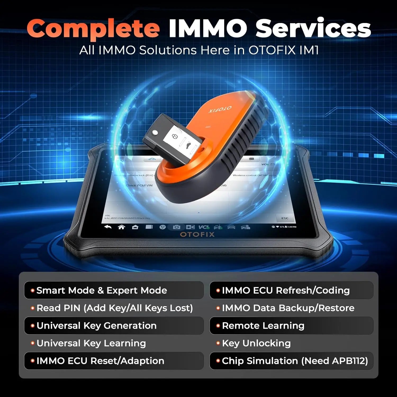 Take your OTOFIX IM1 to the next level with the APB112 Smart key Emulator (sold separately). This powerful accessory unit allows you to:
