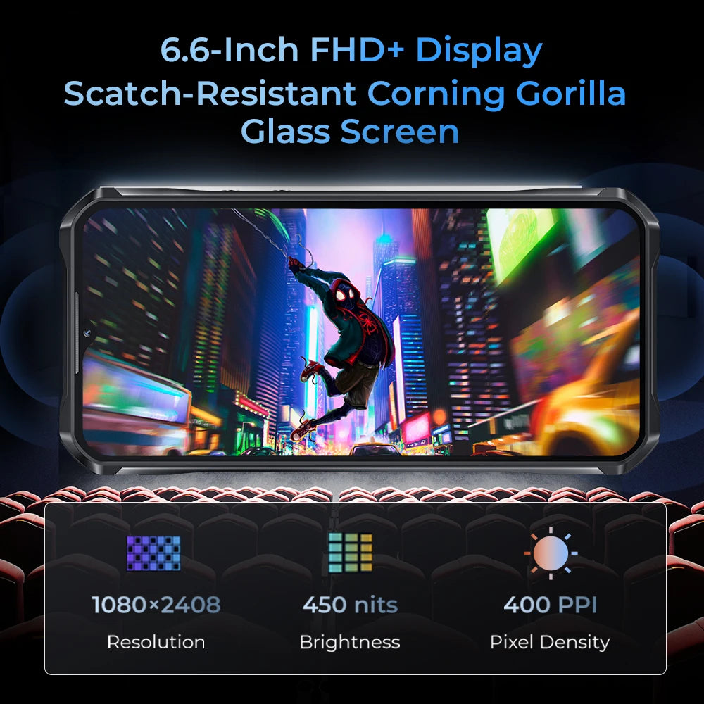 136dB Multimedia Speaker | 22000mAh Battery | 5G MTK Dimensity 6100+ | 24GB (8+16) RAM+256GB ROM136dB Multimedia Speaker (5W)|7-Day Nonstop Use|5G MTK Dimensity 6100+|24GB (8+16) RAM+256GB ROM|IMX 64MP Main Camera|6.6-Inch Corning Screen|Unique Hand Strap|IP68&IP69K&MIL-STD-810H