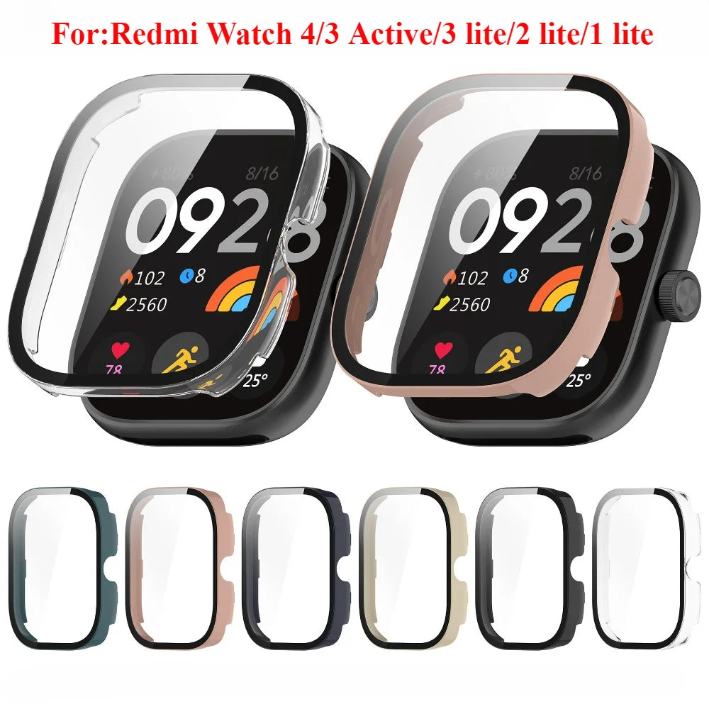 PC Case+Glass for Xiaomi Redmi Watch 4 3 Tempered Glass Anti-scratch Film Bumper Protective Cover for Redmi Watch 3 Active/3Lite