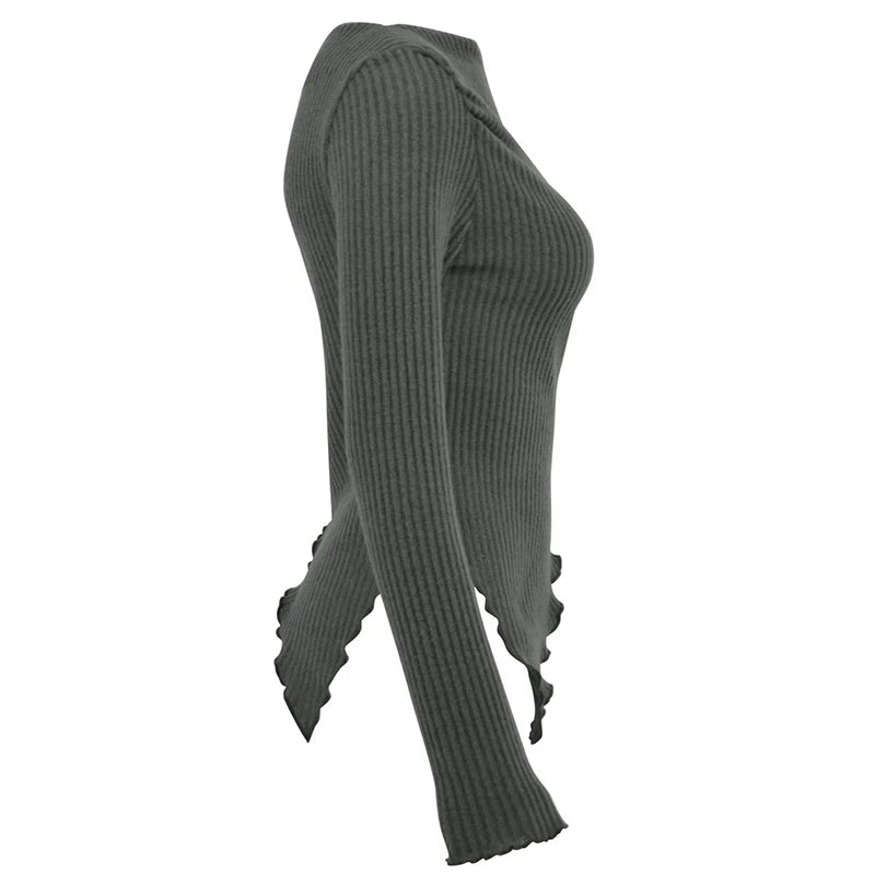 Sexy Asymmetrical Tees Women T-shirt Solid New Autumn Streetwear Long