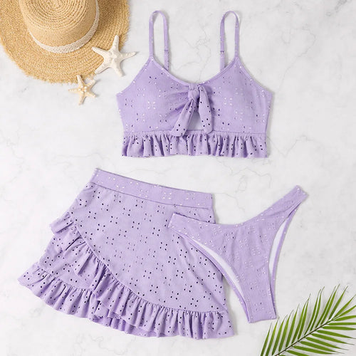Sexy White Ruffle Bikini 2024 Women Three Pieces Swimsuit Brazilian