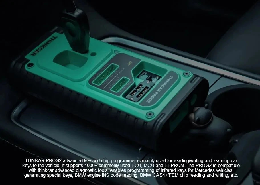 THINKAR PROG2advanced key and chip programmer is mainly used for reading/writing and learning car keys to the vehicle, it supports 1000+ commonly used ECU, MCU and EEPROM. The PROG2 is compatible with thinkcar advanced diagnostic tools, enables programming of infrared keys for Mercedes vehicles, generating special keys, BMW engine INS code reading, BMW CAS4+/FEM chip reading and writing, etc