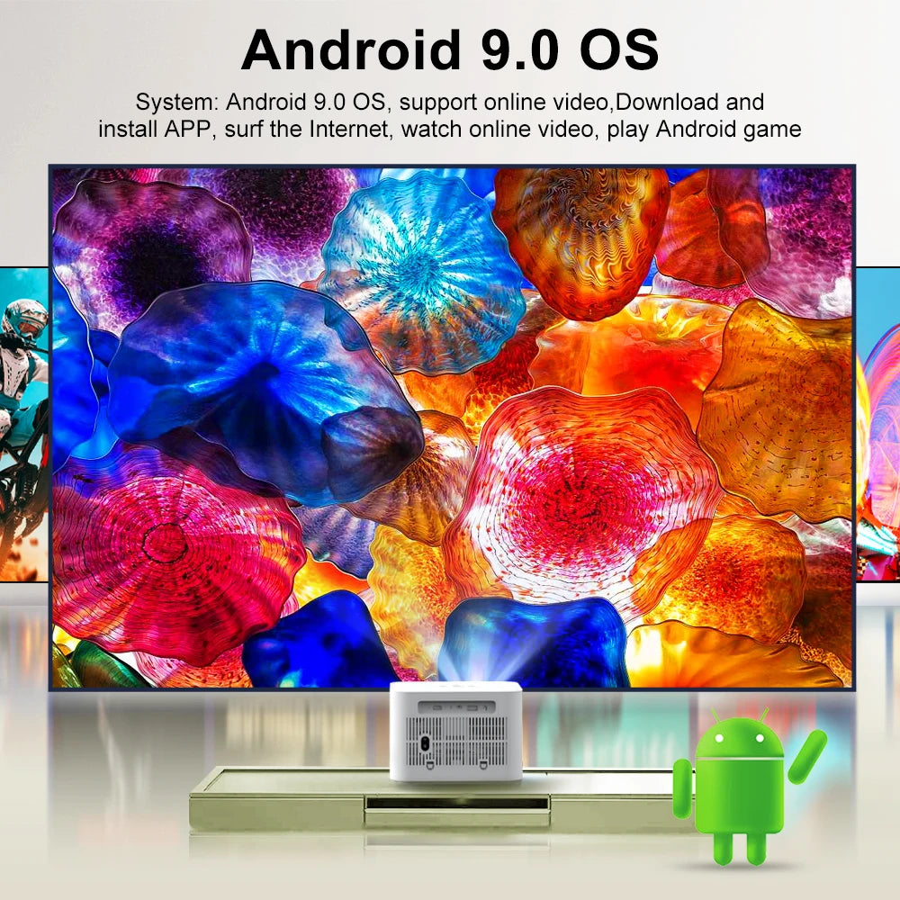 Projector designed with the latest 2.4G/5G WiFitechnology, which helps you quickly connect to your mobile phone or computer within seconds. There is no delay or lag when you play games, throwing you into the movie heaven or the game world easily and happily.