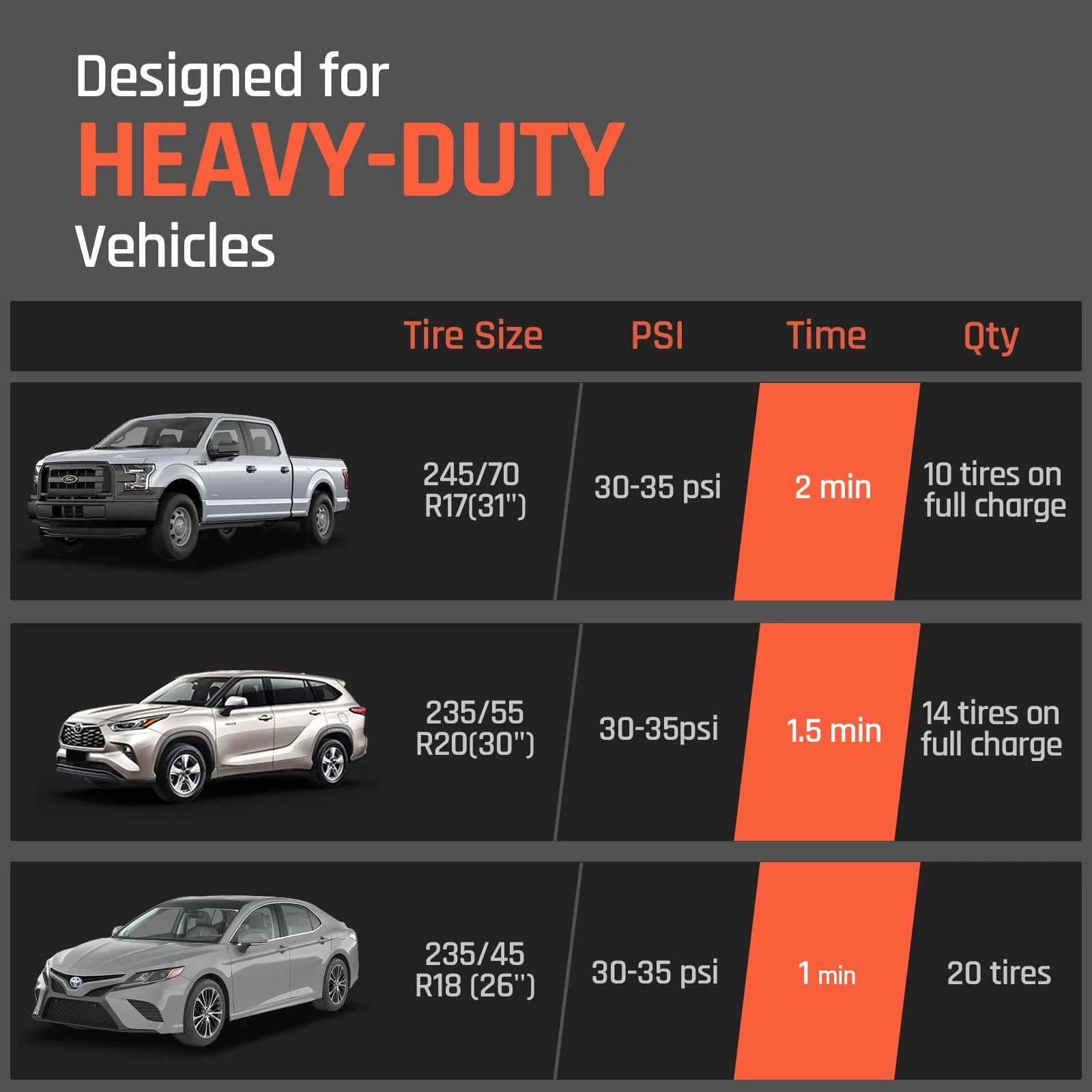 Tire inflator pump, air compressor, ultra-fast inflation, 7800mAh