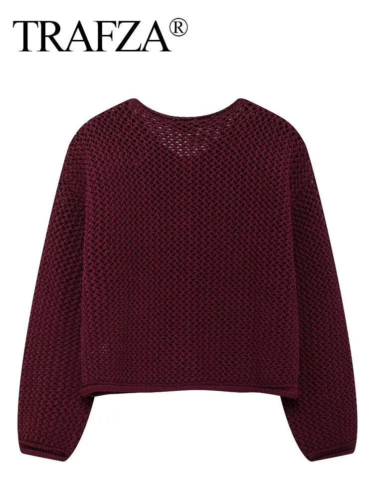 TRAFZA 2024 Autumn Women Knitted Cardigan Metal Buttons O Neck Long