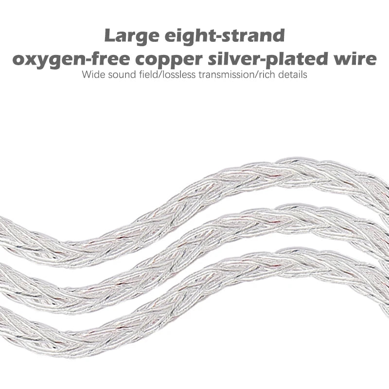 Large 8-strand oxygen free copper plated silver wire, with wide sound field/lossless transmission/rich details.