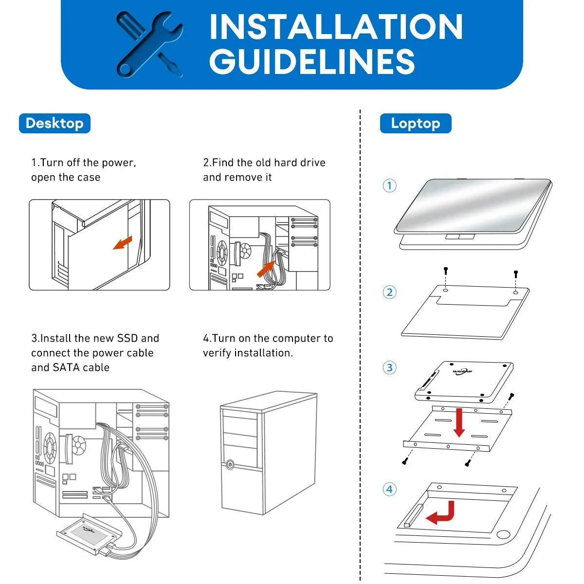 • AHCI Transport Protocol :The WALRAM SSD uses AHCI transport protocol, which means it can communicate more effectively with your PC or laptop's motherboard, resulting in better performance and reliability.