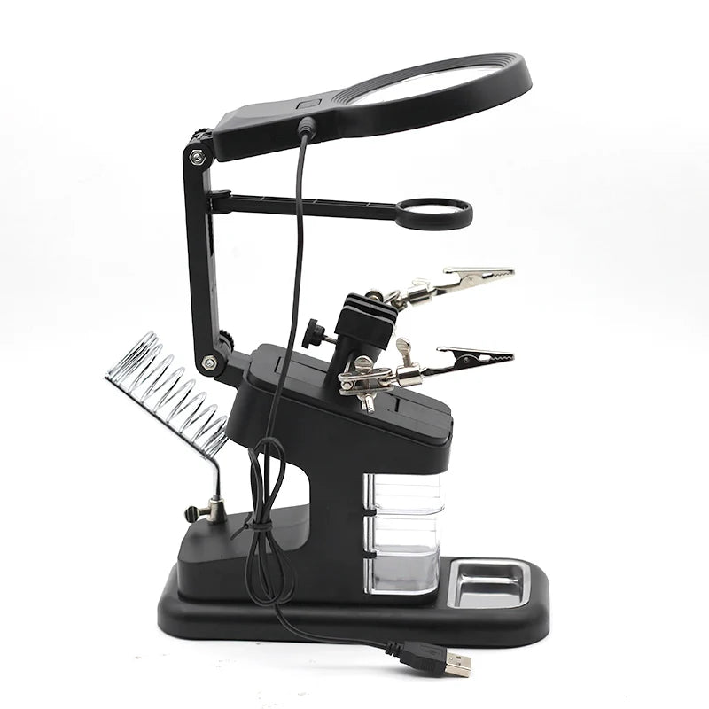 Welding magnifying glass LED Light Auxiliary Clip loupe Magnifier 3 In1 Hand Soldering Solder Iron Stand Holder Station