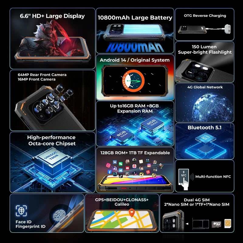 With 8GB of RAM, expandable to 16GB, the HOTWAV Cyber 13 ensures you'll glide through multitasking with ease. Coupled with a massive 128GB of onboard storage, expandable to a staggering 1TB, you'll never have to worry about running out of space for your apps, photos, and files. It's performance and capacity built to handle anything life throws your way.